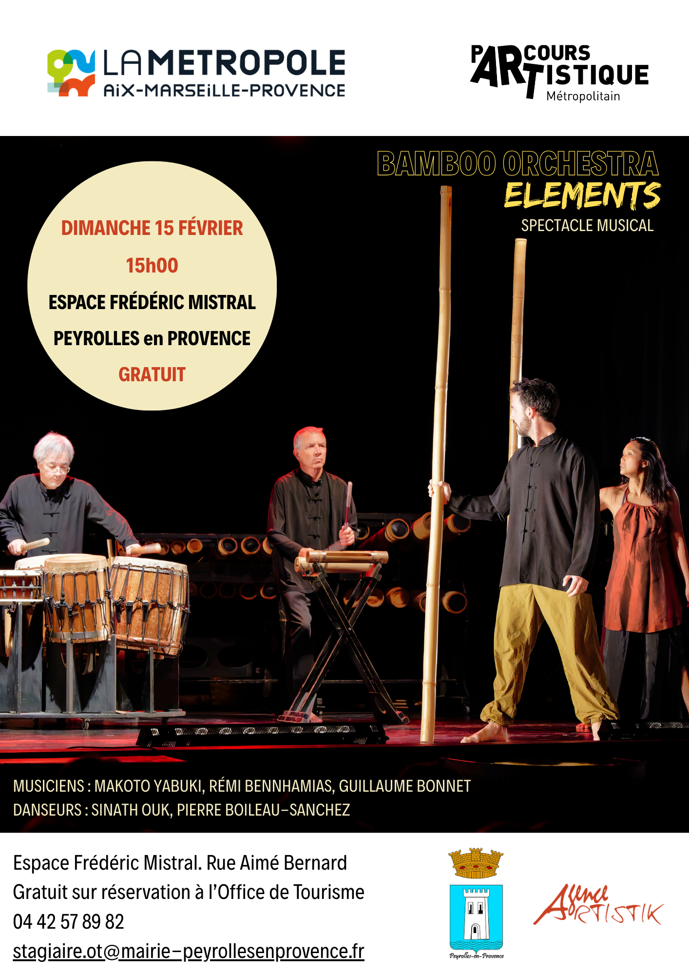 15/02/2026Venez découvrir la magie du spectacle musical Bamboo Orchestra ELEMENTS où sons organiques des percussions fusionnent à la danse, autour de la thématique des quatre ELEMENTS...